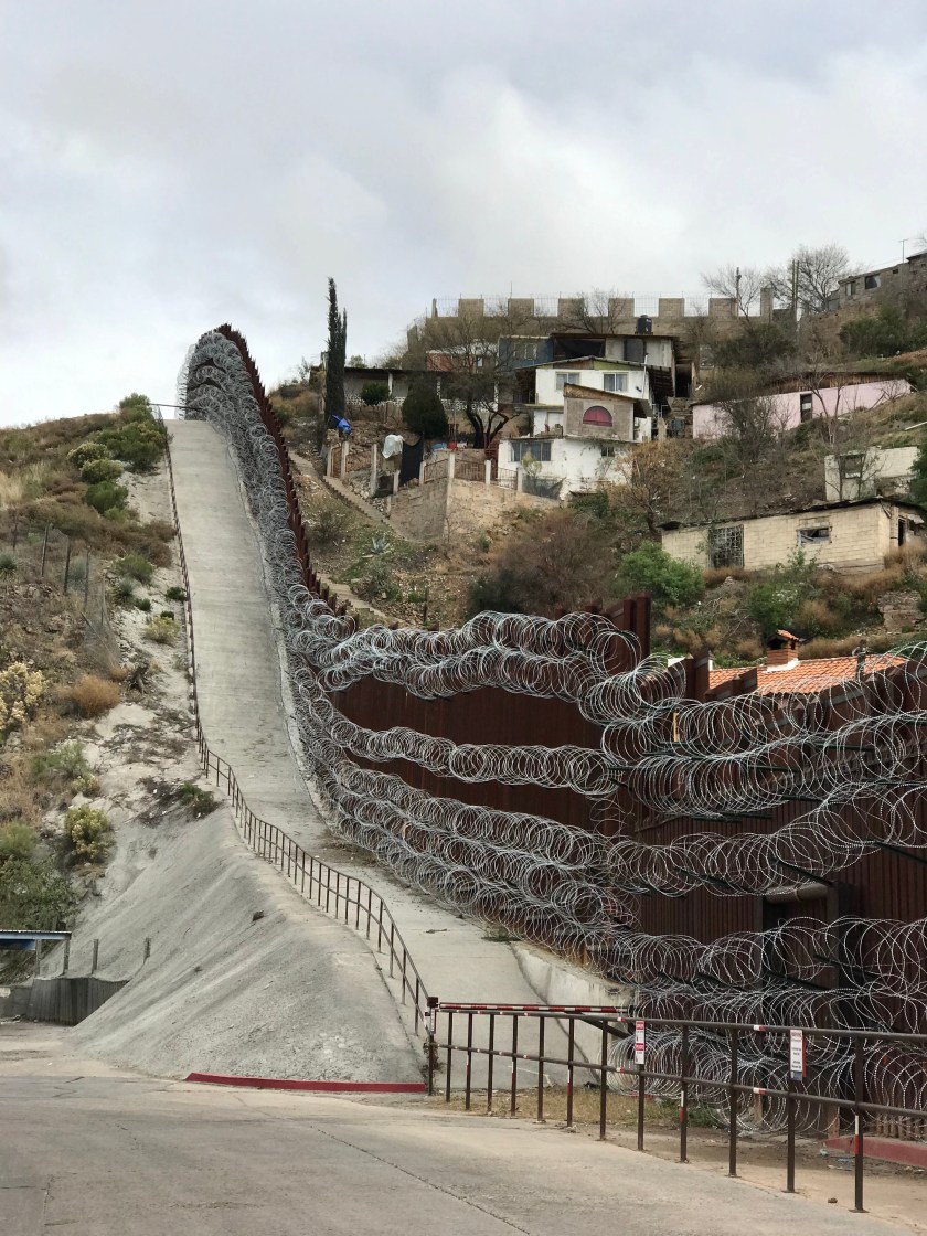 Love the photos of the Tin Can in the snow, the border wall, and the cactus. That razor wire looks nasty.