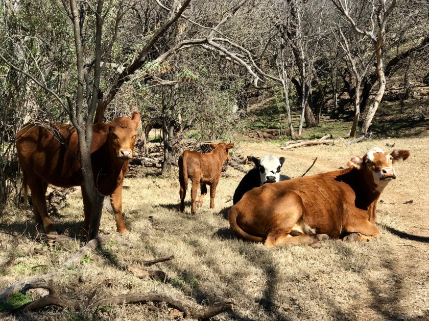 The trail follows Sonoita Creek and traverses open pasture land. As a result you share the trail with these guys.