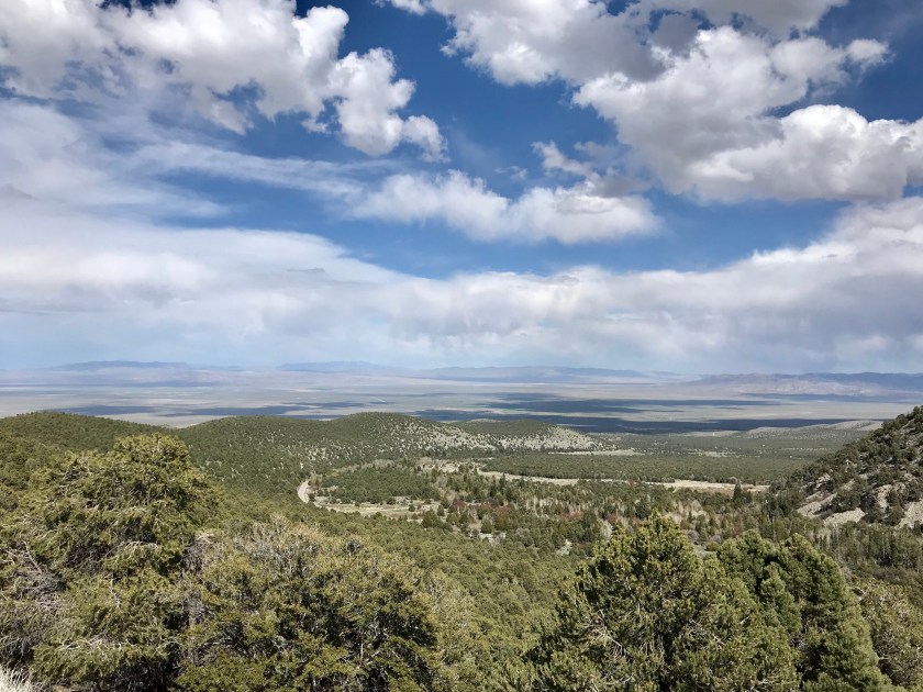 The Great Basin is one of four deserts in the US, the driest (an average of 10 inches of rain a year) and highest (5,000 plus ft in the valleys) it extends from the California border in the West to the Wasatch Mountains in Utah to the East. It stretches North into Oregon and South below Las Vegas with the mountains getting as high as 13,000 ft.