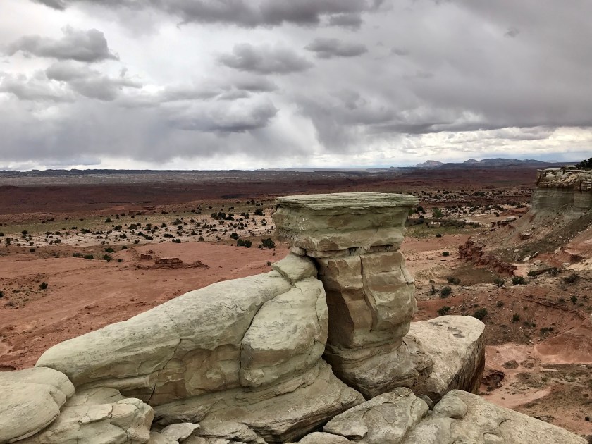 We continued along US70 toward Moab to meet up with our Denver friends Barbara, Roger and Genevifka. US70 enters Utah through the San Raphael Swell, a ruggedly beautiful area.