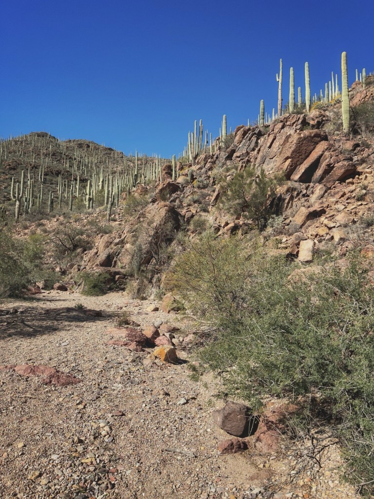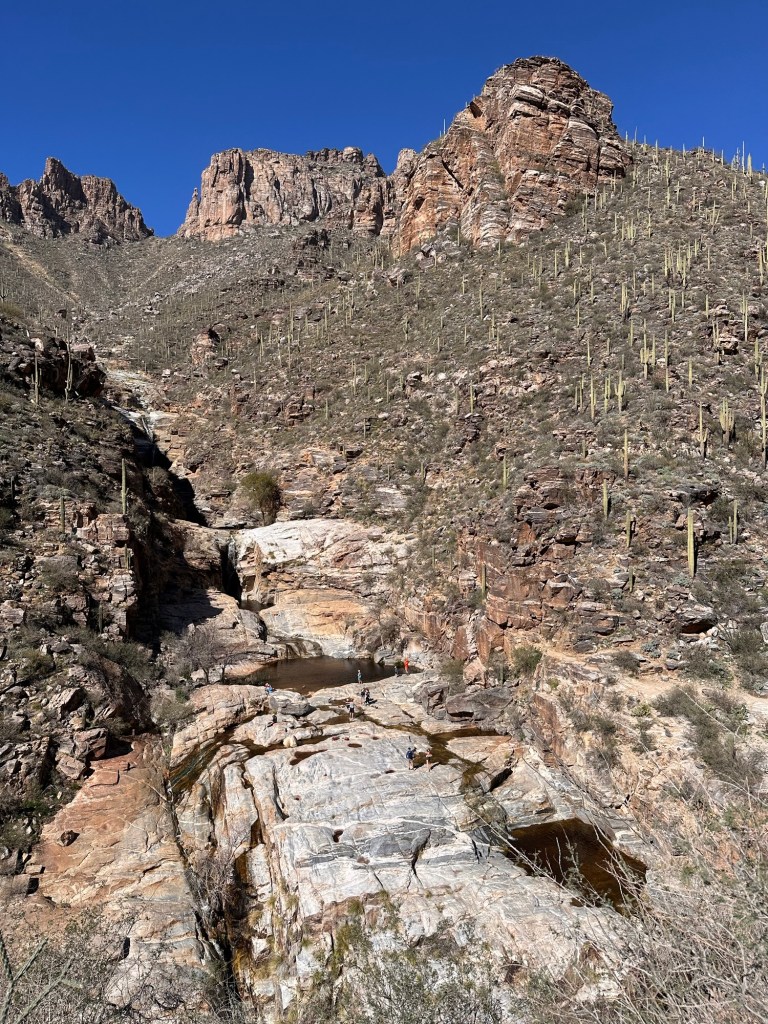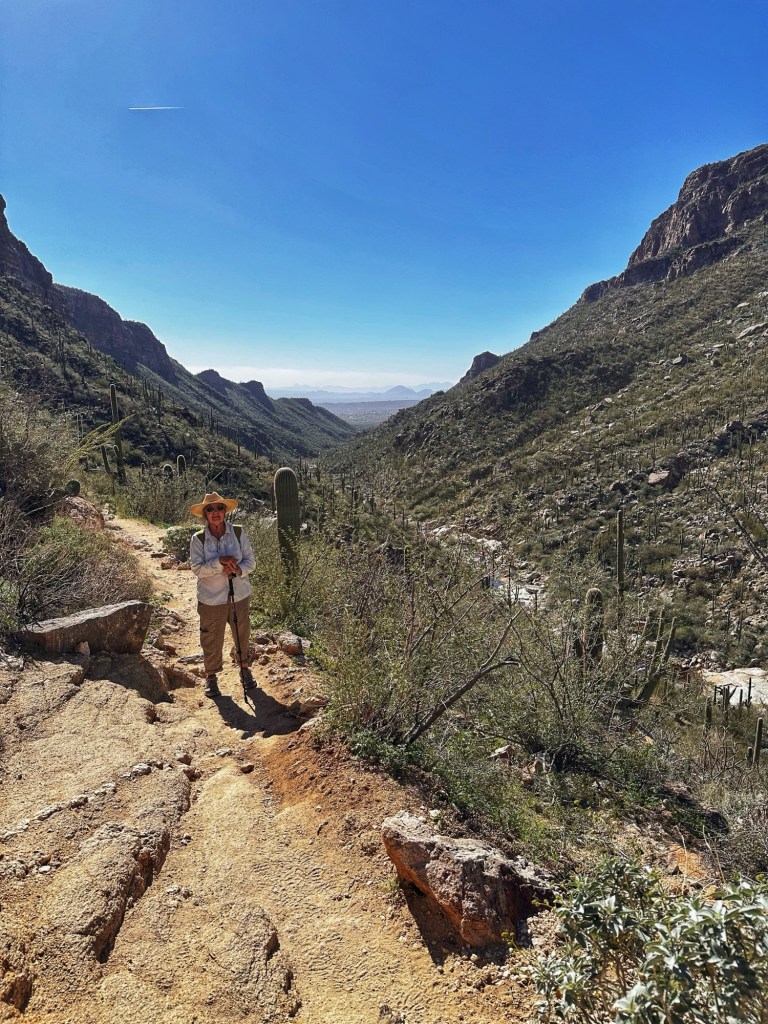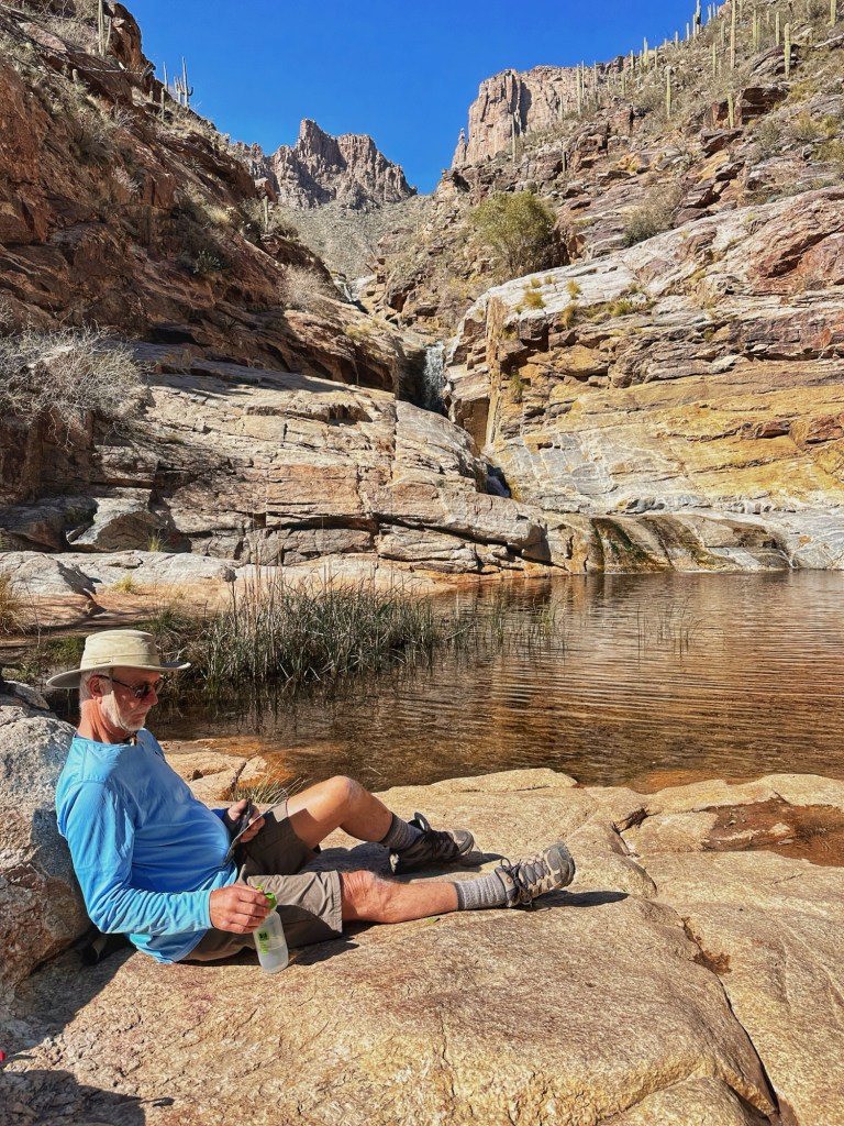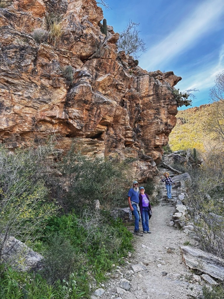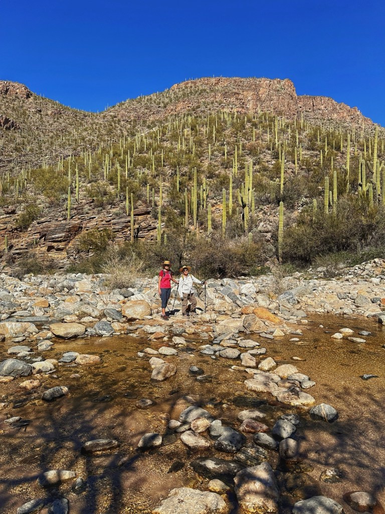 We met Barry and Janice on a previous stay at Desert Trails. Both are avid hikers and bikers. We teamed up with them to take on a Sabino Canyon hike along Bear Creek to the Seven Falls. This five + mile round trip hike requires five water crossings.