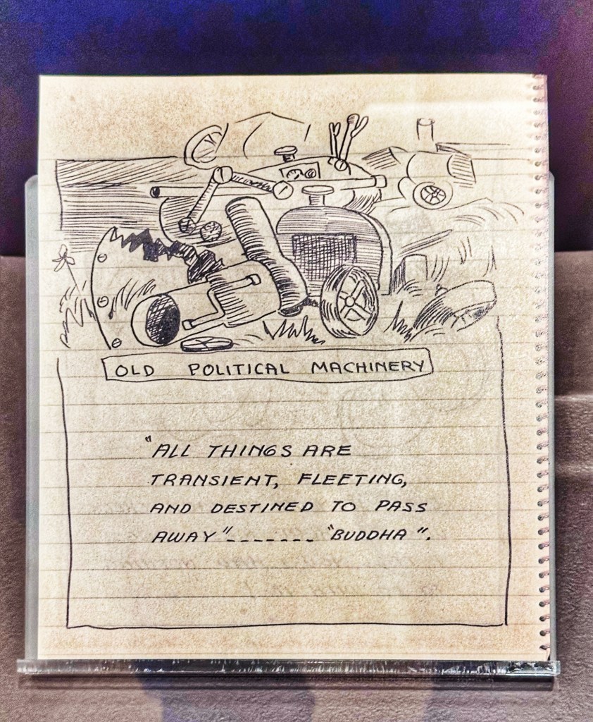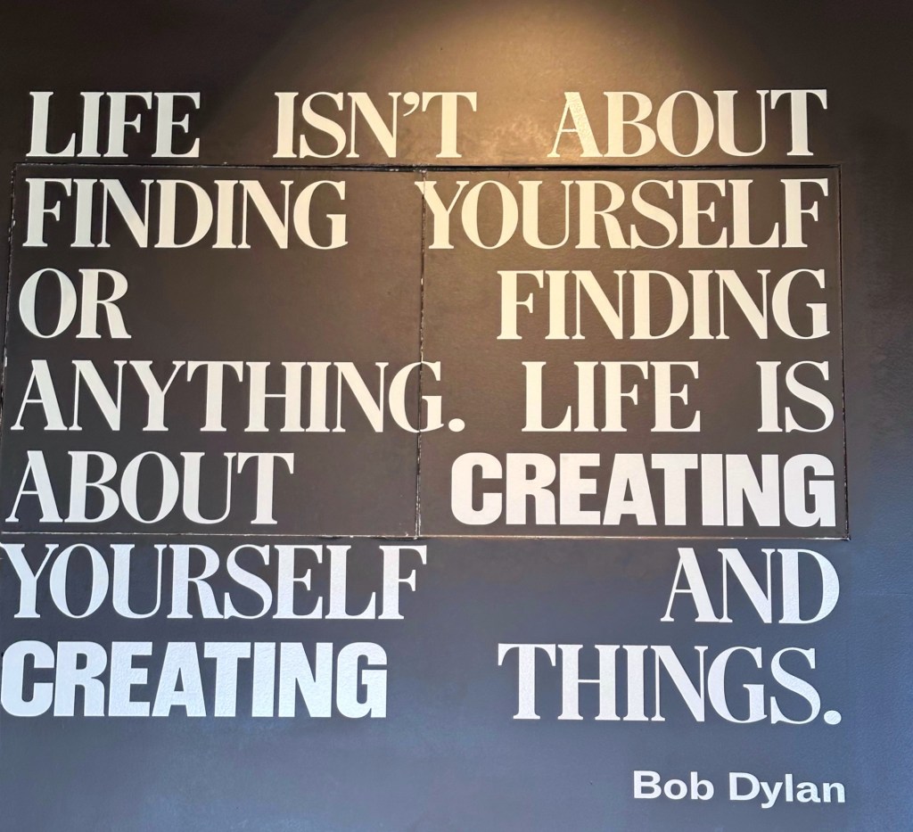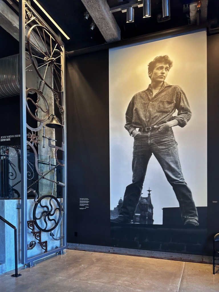 Dylan was a bit of a pack rat and saved everything. From notebooks, letters, and Christmas cards. The center is two floors and full of all things Bob Dylan. As you enter you are greeted by a larger then life portrait of a young Dylan next to a metal sculpture of his making.