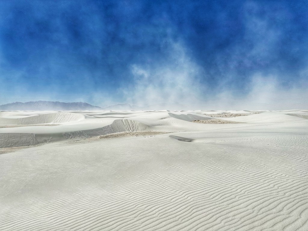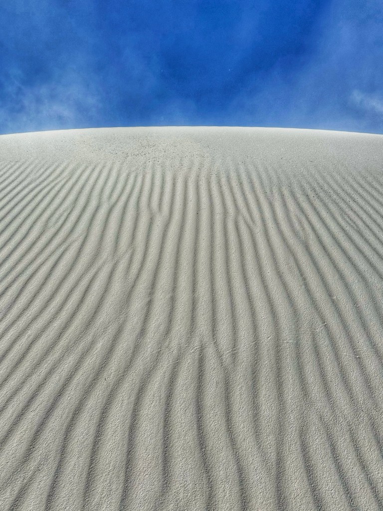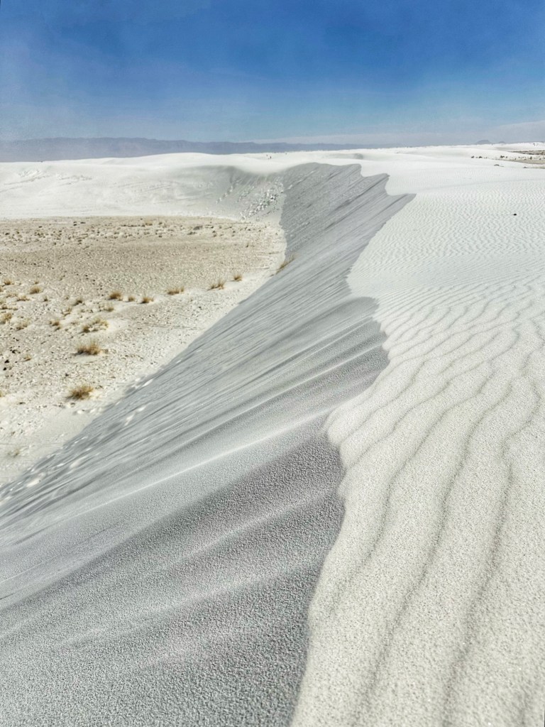 White Sands National Monument is located in the Chihuahuan Desert and covers 275 square miles of the Tularosa basin. Most of the sand we encounter is made up of granite but the sand in the Monument is made up of gypsum which has eroded from the surrounding mountains. It’s a surreal experience hiking through the dunes.