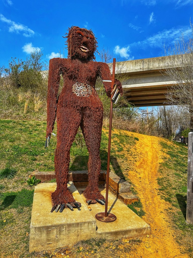 A giant furry Sasquatch made of steel and bike chains created by Amanda Willshire in 2018