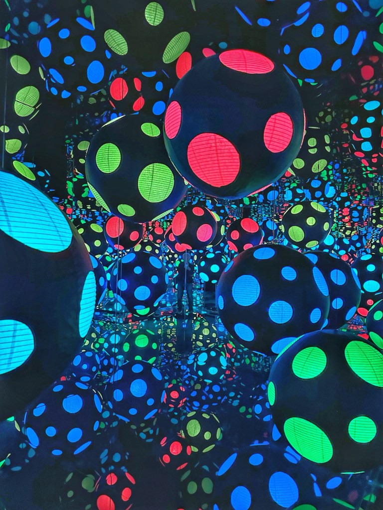 Trace Me Back, 2023 by Marie Bannerot McInerneyInfinity Mirrored Room,- My Heart is Dancing into the Universe, 2018 by Yayoi Kusama
