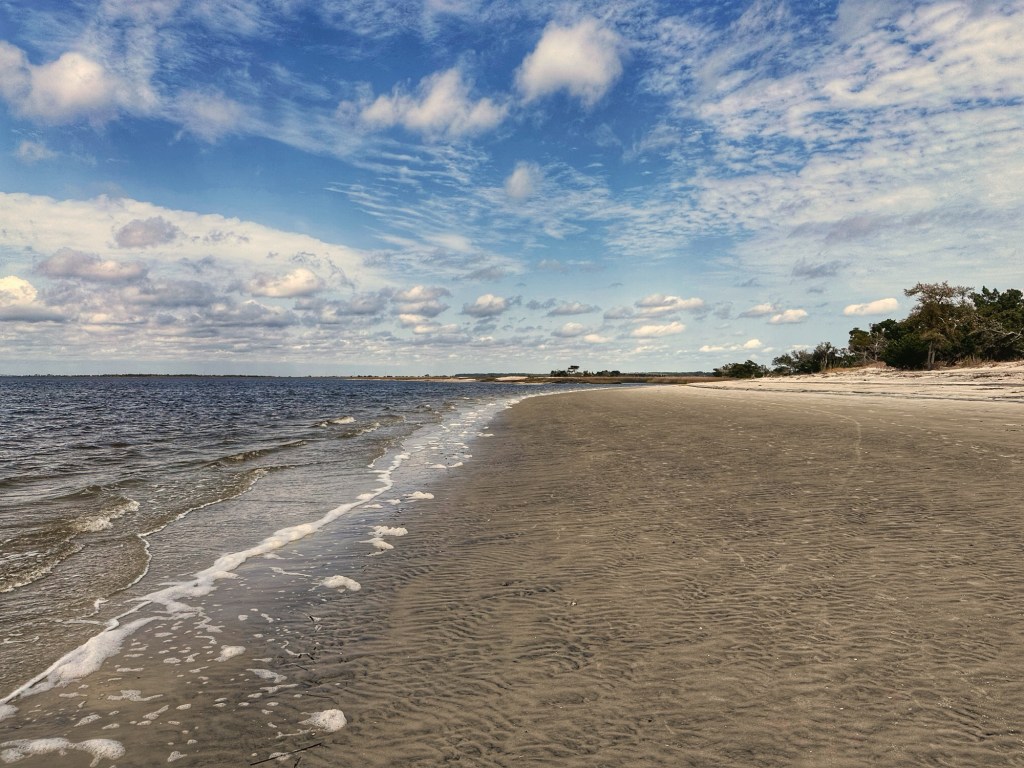What we love about this park is the easy access to its undeveloped five mile shoreline. It’s a great beach for walking and at low tide bike riding.