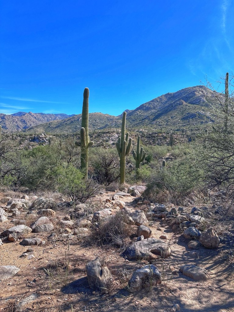 We have visited Catalina state Park a number of times. There’s an hike we enjoy near the campground that had no name and wasn’t an official trail. This year the trail has made it to the list of official park trails- the Alamo Loop. We’re not sure how this 3.2 mile loop got its name.