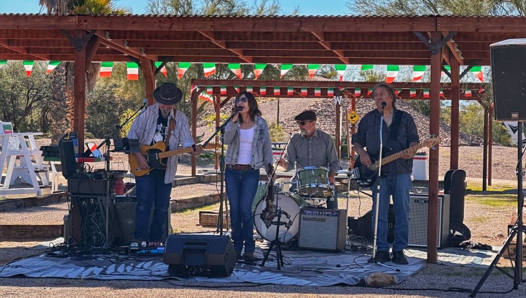 The park has a group of residents that gets together and invites local bands to play at the park once a month. We arrived in time to enjoy the first concert of the season, the Heather Harding Band. Heather is a Tucson blues legend who plays violin and sings. It was a terrific show.