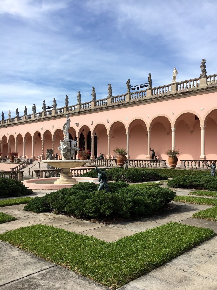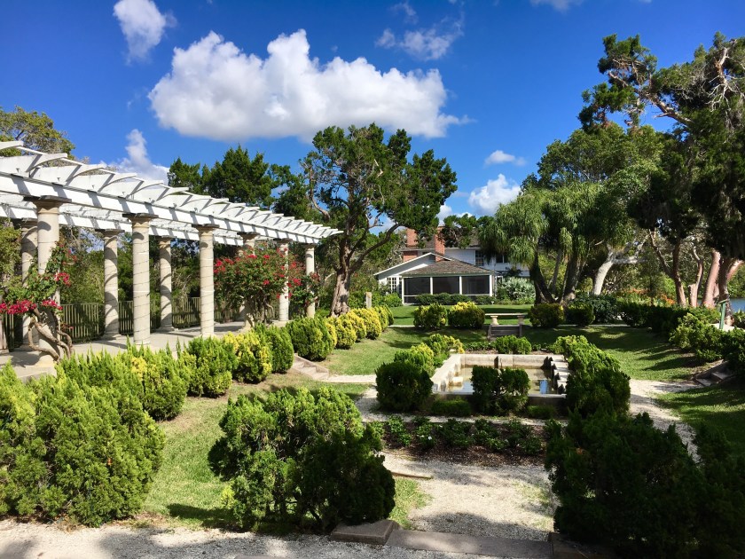 The grounds of the estate are on Sarasota Bay. The park like setting offers beautiful gardens and art for viewing.