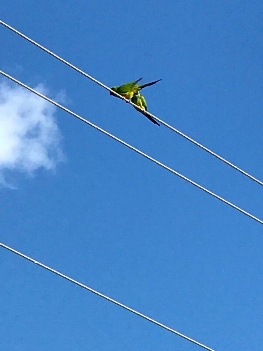 That’s the commuter train not far from the Tin Can. It is amazing what you can ignore when you find a location that perfectly fits your needs. If the campground was a parking lot beside a train track, the park itself was lovely. It had a 2 1/2 mile walking trail(Pat was happy) and beautiful grounds. Despite the urban setting there are a lot of birds. One day we saw a flock of wild green parrots come through. They are really noisy.