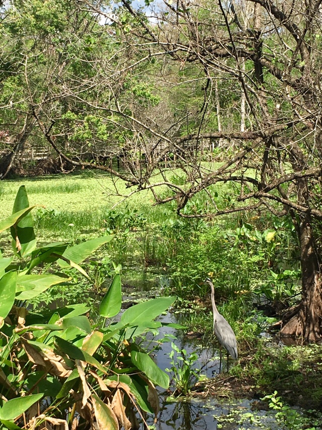 This water teams with life. Hundreds of fish make the surface boil, alligators lurk beneath and birds stalk the fringes – often perched on cypress knees.