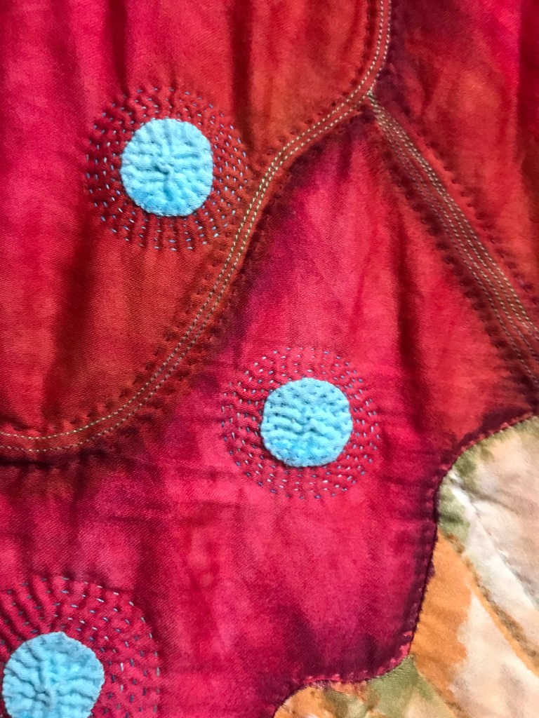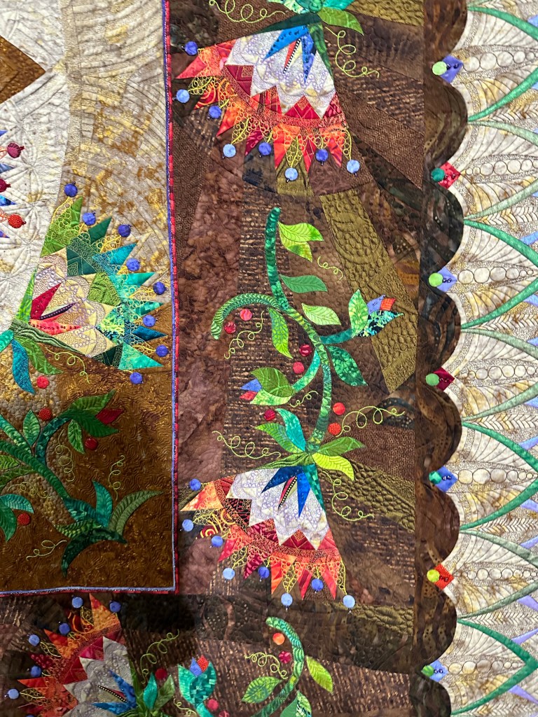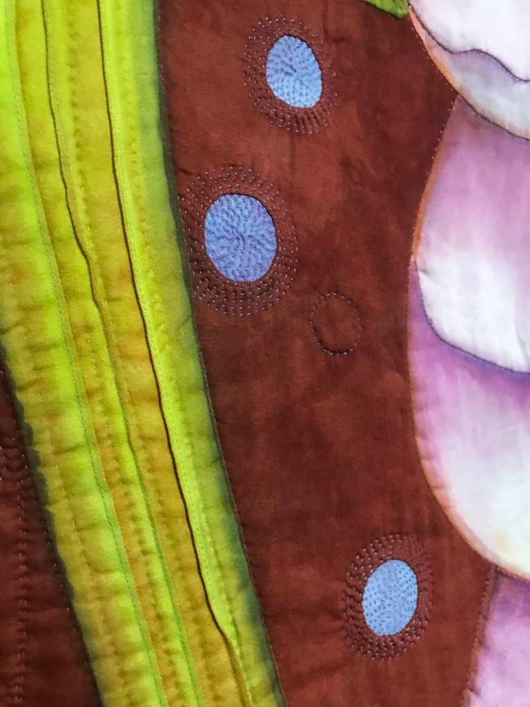 The other major museum show was “Larger Then Life” by Velda Newman. She dyes all of her fabrics and hand quilts everything.