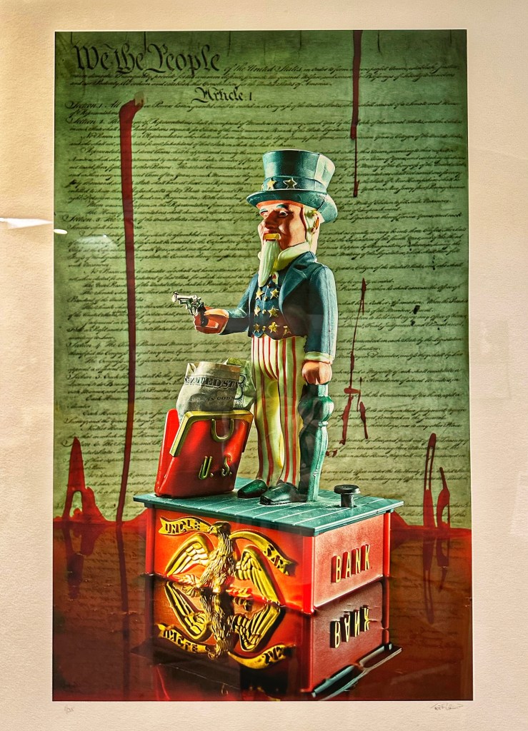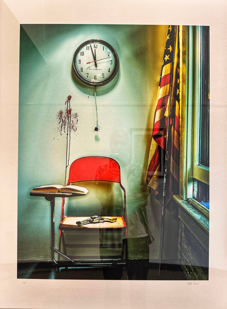 The art gallery was presenting a provocative photo exhibit by Jeff Corwin, “Guns In America”.