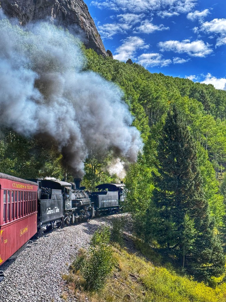 Pat’s sister Carolyn had a bucket list idea to ride the Cumbres- Toltec steam train out of Chama ~we joined her for a fun day on the rails.