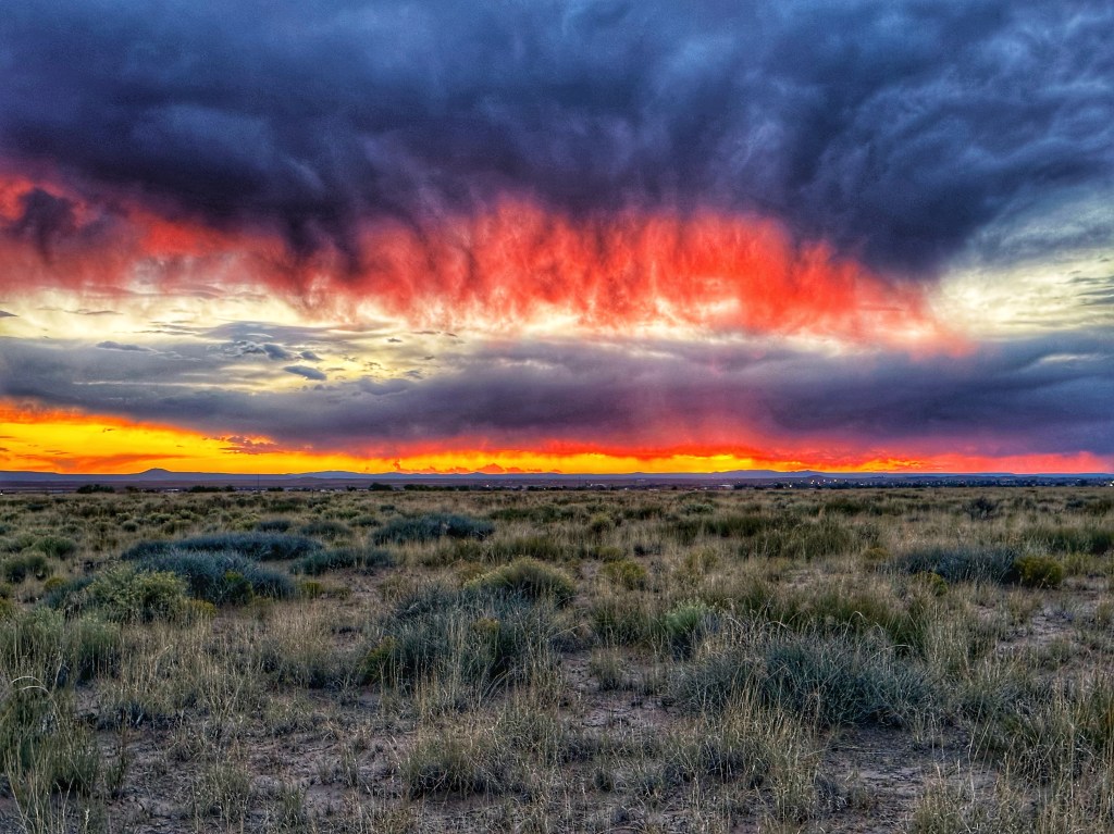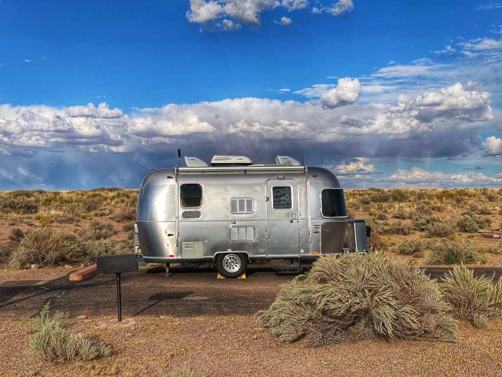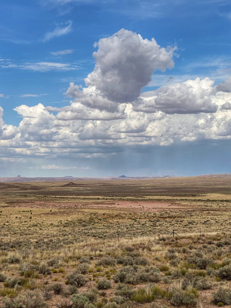 While traveling the desert southwest we’ve seen a meteorological phenomenon known as a virga or dry storm. What happens is that moisture builds up and precipitates from the clouds but evaporates before it hits the ground; creating a dry storm. While we’ve seen this phenomenon before, we’ve never seen it at sunset. That changed on our last night at Homolovi State Park.
