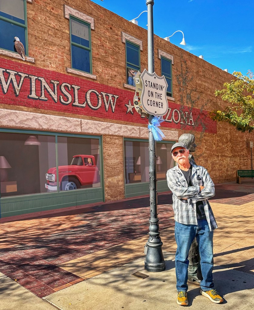 The historic town of Winslow (also a well known Route 66 destination) is a short drive from camp. It’s claim to fame originates from a couple of musical references.
