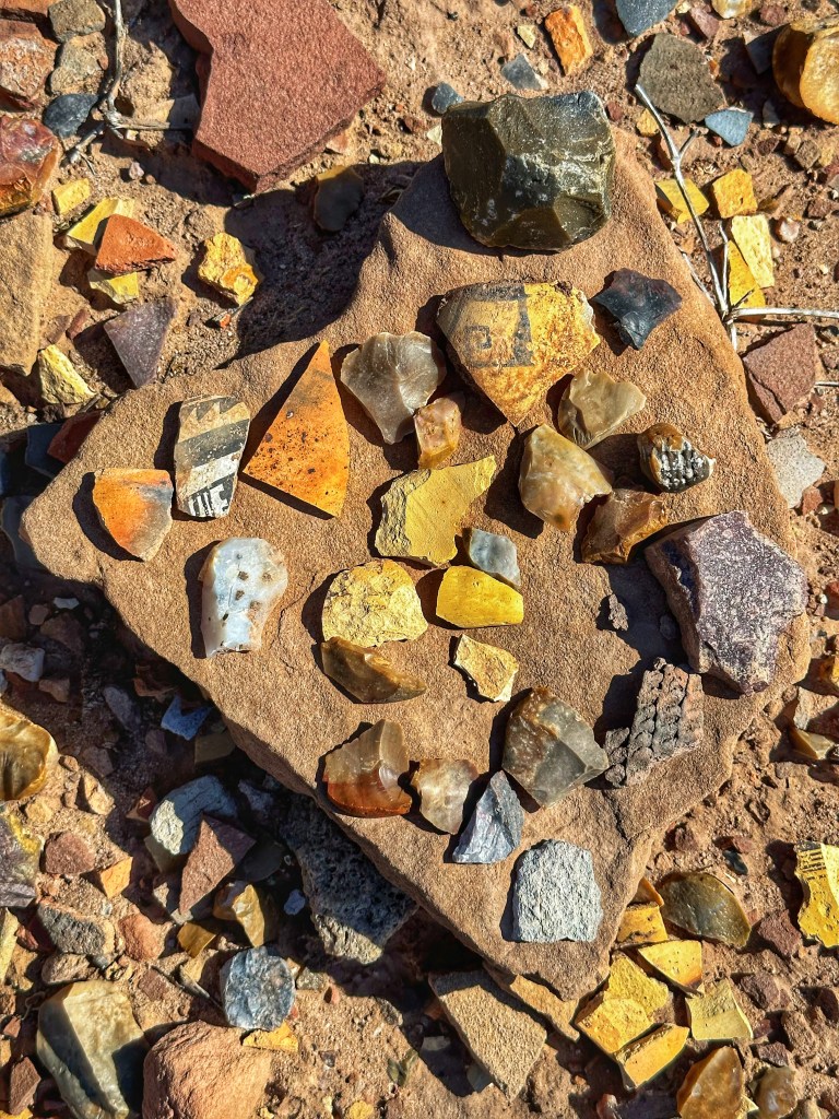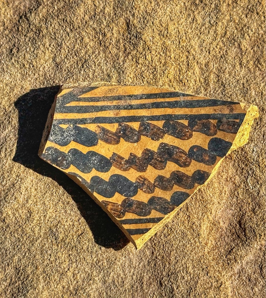 The ruins are littered with pottery shards. The Hopi say that the broken pottery is now part of the land and the trail that Bahana will follow when he returns.