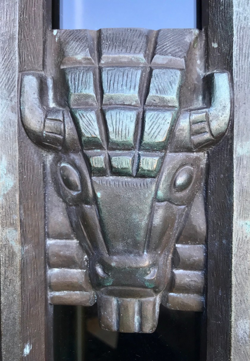 These are artillery shell casings from the First World War that have been fashioned into vessels by soldiers. The shells are brass, an alloy composed of copper and zinc.
