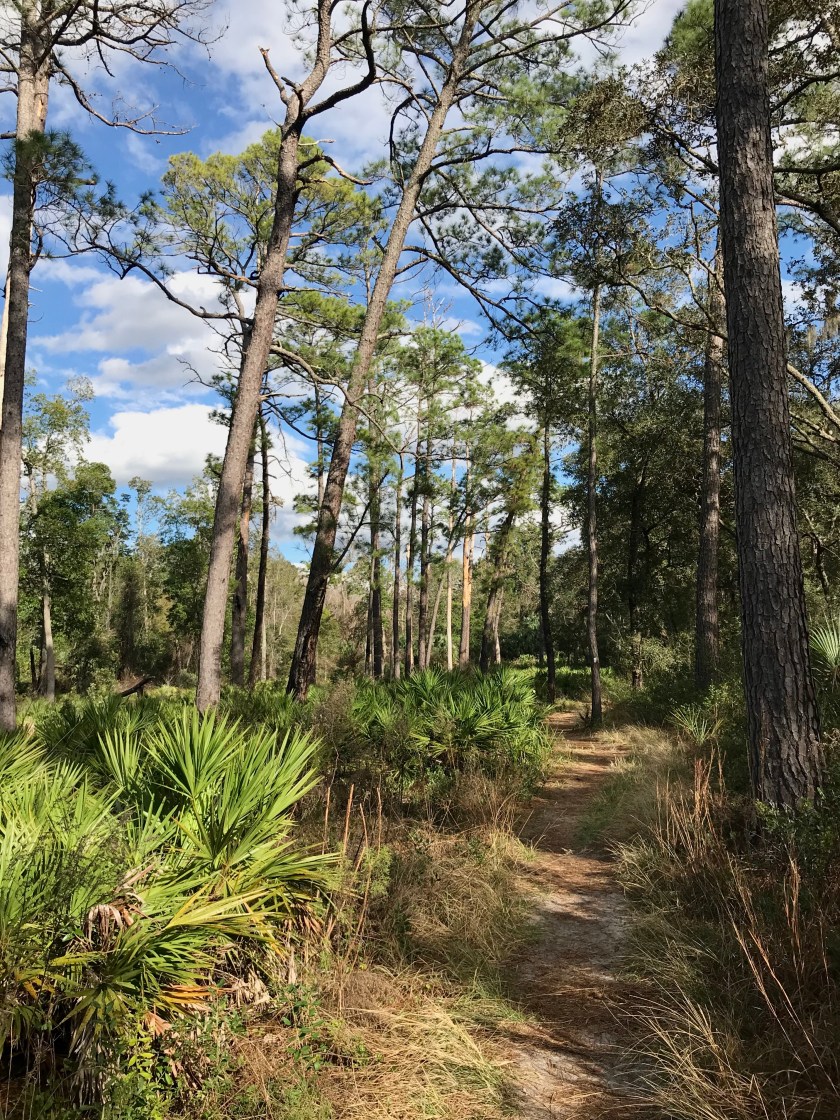 The campground is nestled into a sand pine woods with lots of hiking and biking trails.