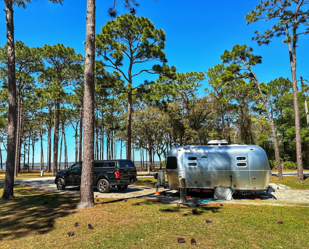 The campground gives easy access to miles of beautiful white sand beaches. While we didn’t encounter any rain for most of our stay it was overcast and windy.