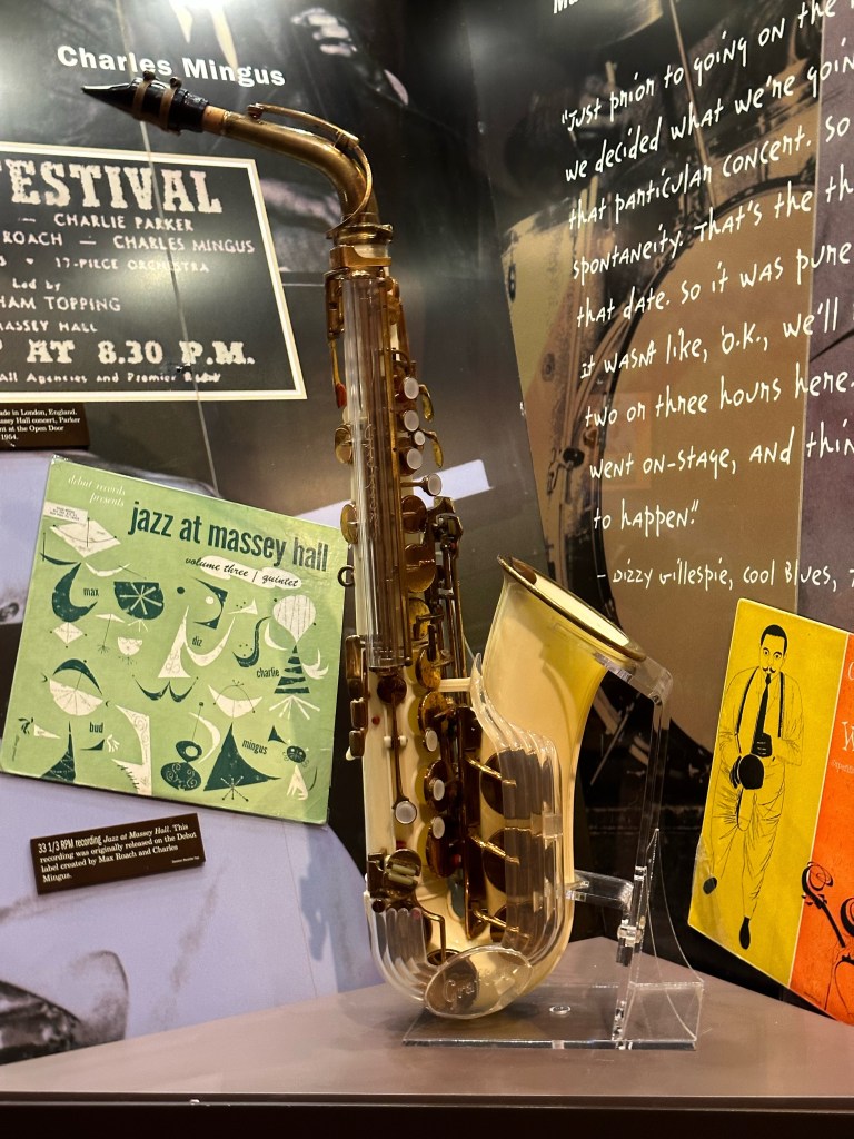 The museum is filled with lots of listening stations and performance footage. Historic artifacts however, were in short supply. They did have a Grafton plastic saxophone like the one Charlie Parker played on the famous Massey Hall recording from 1953.