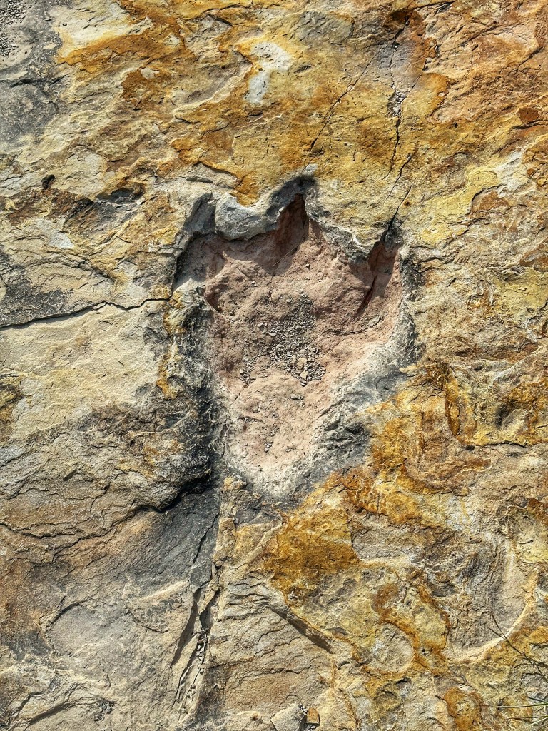 In 1955 the state of New Mexico dammed up Seneca Creek to create Clayton Lake. Layers of basalt and shale were blasted away to create an emergency spillway and exposed the underlying sandstone. In 1982 the lake overflowed into the spillway and removed the last few inches of sandstone exposing the dinosaur tracks.