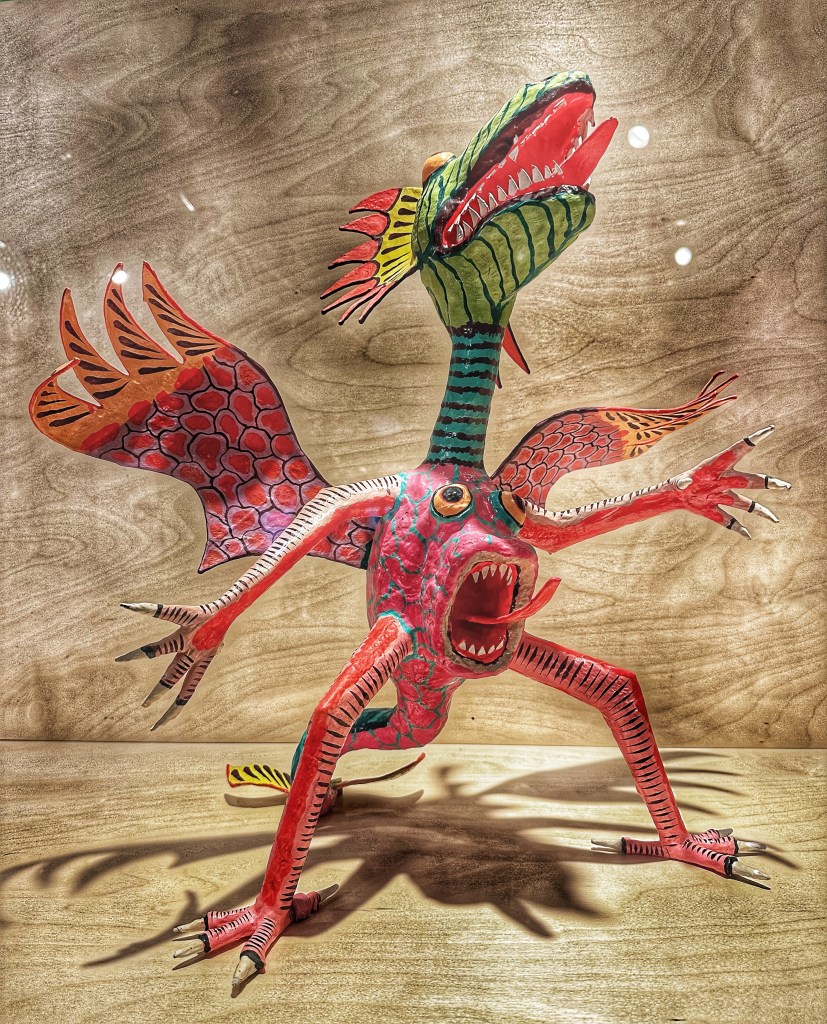 Santa Fe is a city steeped in art. Civic and private art galleries dot the city. On the east side of the city is an area known as Museum Hill. This is where you will find the International Museum of Folk Art and the Museum of Indian Arts and Culture among others. The Folk Art Museum was featuring an exhibit of Mexican Cartoneria. This work is created using paper and paste, papier-mâché. The technique is thought to have come to Mexico with the Catholic priests from Spain.