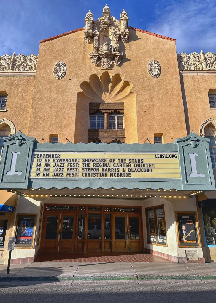Close to the Plaza is the Lensic Theater, a “Spanish-Moorish” style theater built in 1931. In the 1990’s the theater closed for renovations and re-launched in 2001 after a multi million dollar renovation. It hosted this year‘s New Mexico Jazz Festival where we attended two wonderful performances.