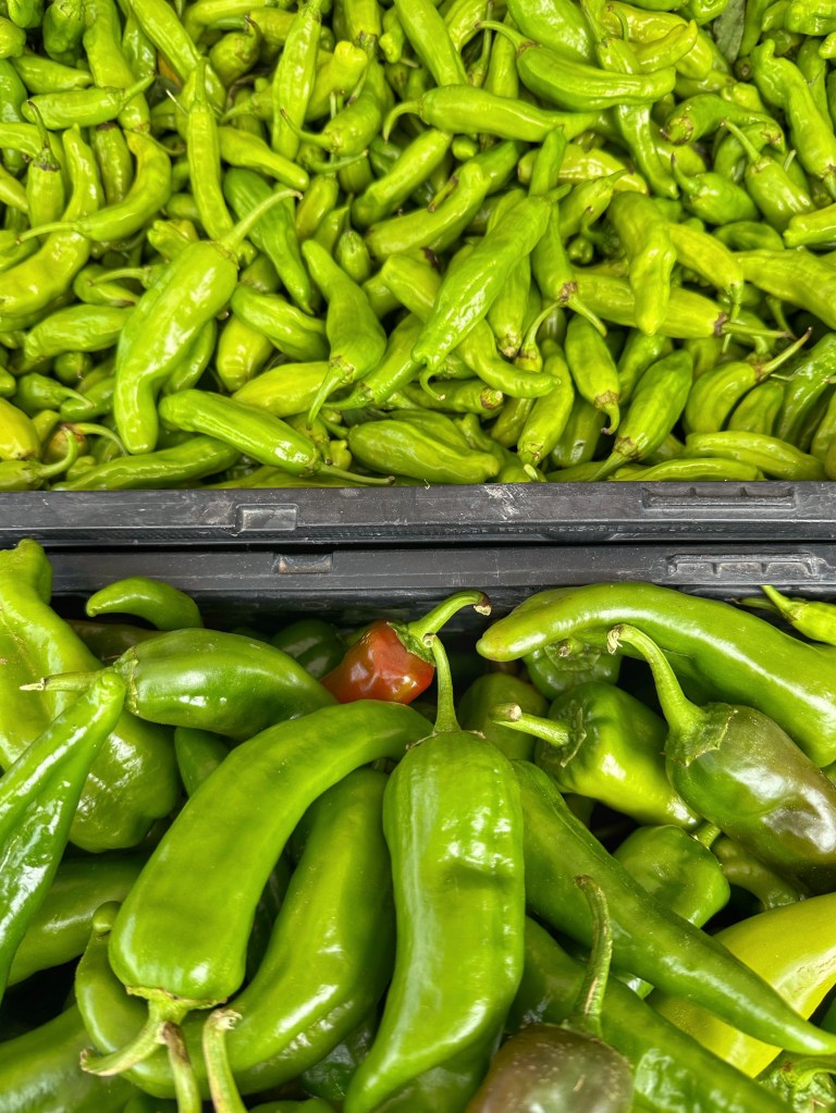 We love shopping the farmers market in the fall during chili pepper season. Nothing better then a New Mexican green chili.